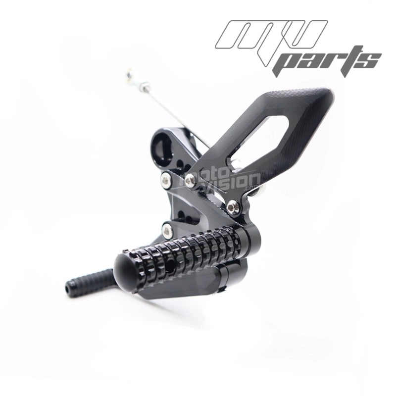 Die Verstellbar Fussrastenanlage Moto-Tron Racing haben auch einen direkten Einfluss auf Ihre Motorradleistung, indem sie die Präzision beim Schalten und den Einsatz der Hinterradbremse verbessern, um eine bessere Bodenfreiheit und eine gute Gewichtsverlagerung beim Schräglagenwechsel zu erreichen.