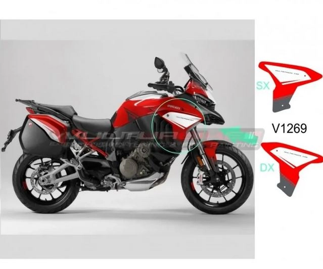 Aufkleber für Seitenteile - Ducati Multistrada V4/V4S - Farbe Rot/Weiß/Graphit matt