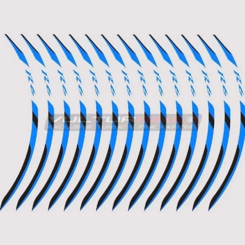 Gestalten Sie Ihr Motorrad individuell mit den Schwarze blaue Motorradrad-Aufkleber - Yamaha R6. Die selbstklebenden Dekosticker von Vulturbike werden aus gefärbtem, UV-beständigem Vinyl ausgeschnitten.