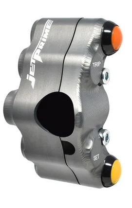 Das linke Jetprime-Druckknopfpaneel ist mit dem Originalblock austauschbar und auf die Lenkerhälfte jedes Motorrads anwendbar, ohne dass irgendwelche Änderungen vorgenommen werden müssen.