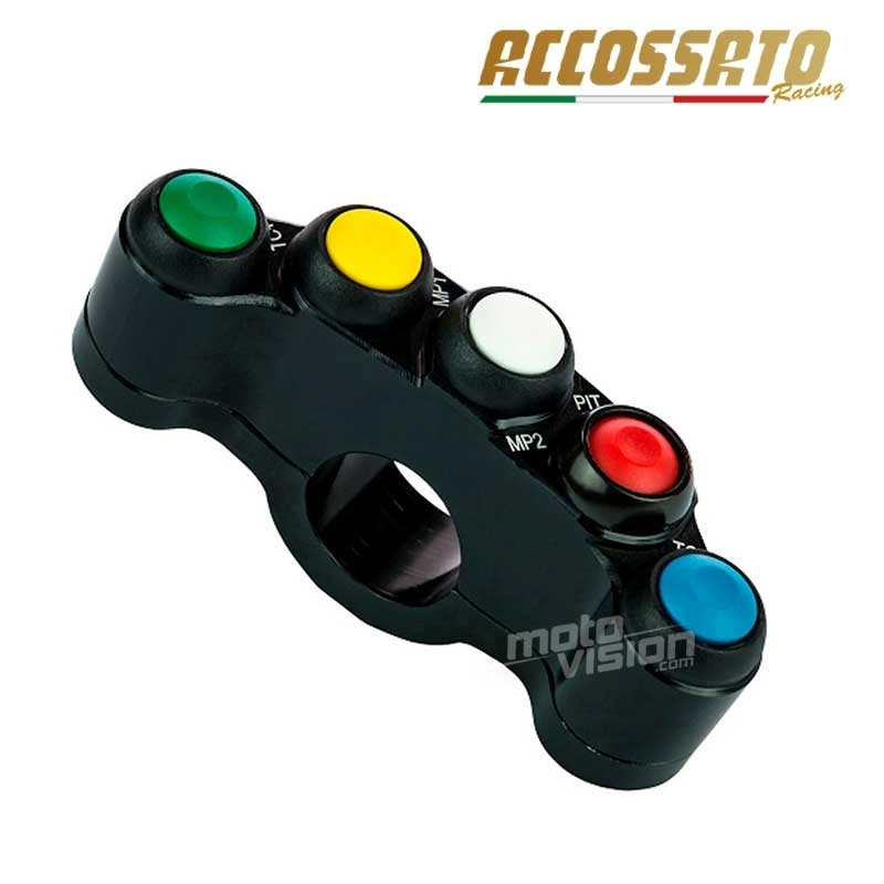 Accossato, eine unumgängliche Referenz in der Welt der Rennmotorräder, bietet Ihnen eine Reihe von Commodos aus massgeschnittenem Aluminium, die für anspruchsvolle Fahrer entwickelt wurden. Funktionalität, Ergonomie und Zuverlässigkeit: Alles ist darauf ausgelegt, Ihre Leistung auf der Rennstrecke zu optimieren, ohne Kompromisse.