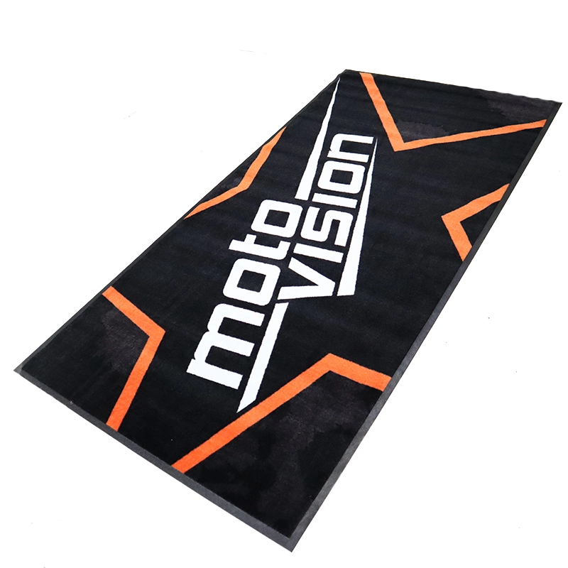 Diese Matte mit dem Moto Vision-Logo ist 1m x 2m groß.
