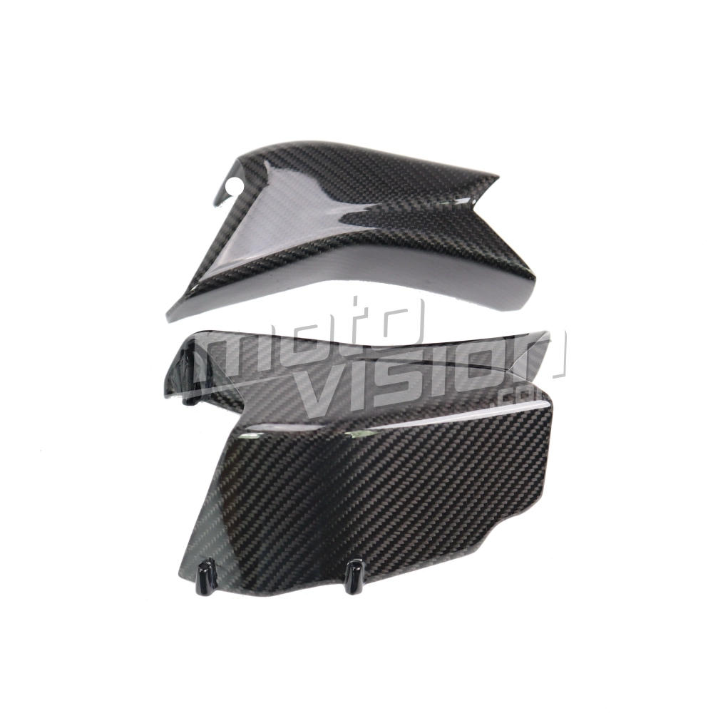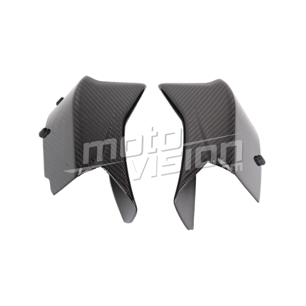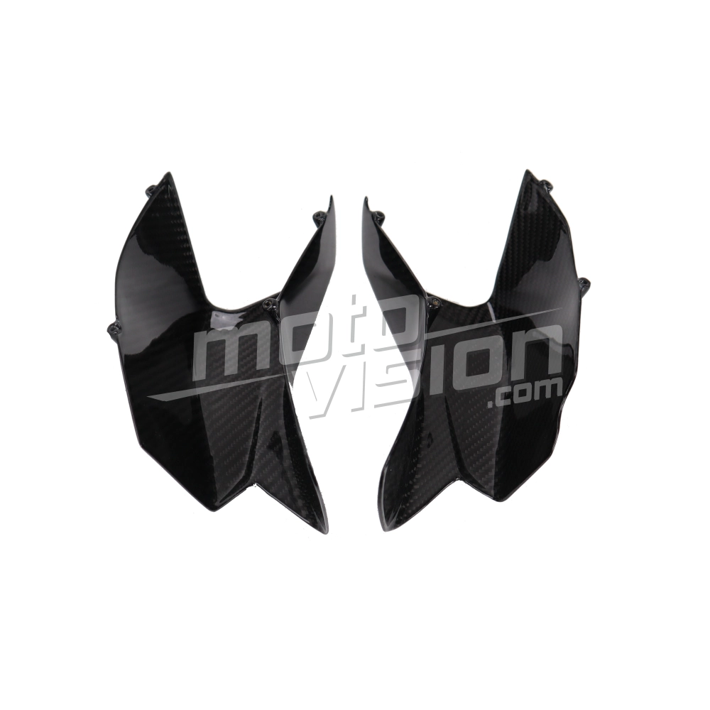 Carbon LuftKannal Ducati Multistrada V4-V4S-V4S Sport, geliefert ohne Schrauben oder andere Befestigungen. Die Bohrungen sind bereits an den Motorradverkleidungen aus Carbon angebracht. Die Teile sind mit glänzendem oder mattem Lack erhältlich.