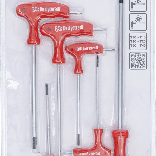 Schraubendreher mit T-Griff T-Profil (für Torx) mit Frontbohrung T10 - T40 6 Stück