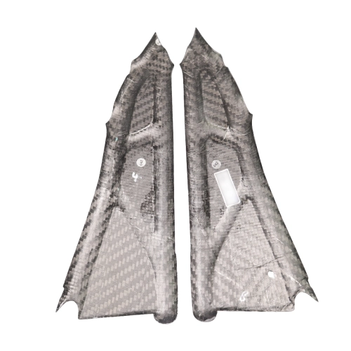 Die Teile bestehen aus echtem Karbon, das aus einer äußeren Karbonschicht und zwei inneren Glasfaserschichten besteht.