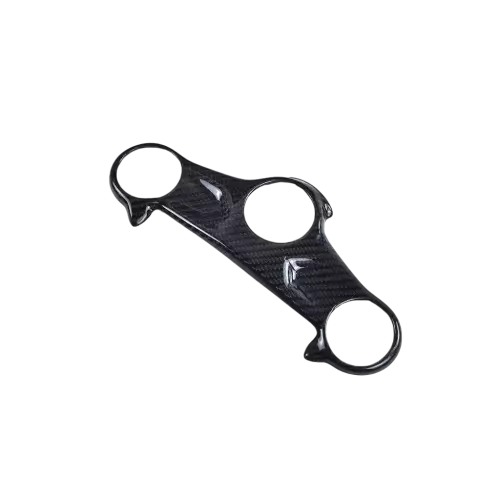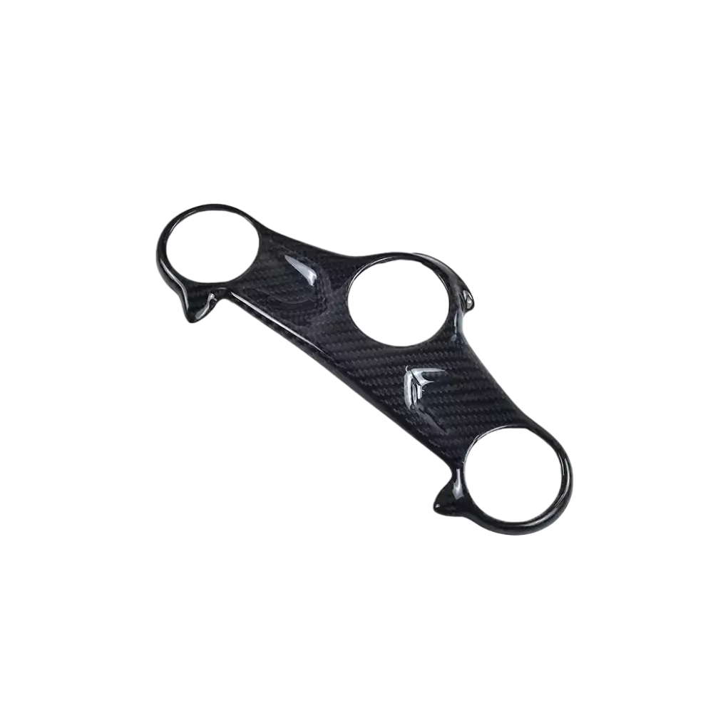 Carbon-Gabelbrückenabdeckung Honda CBR650R 2019-2023, geliefert ohne Schrauben oder andere Befestigungen. Die Bohrungen sind bereits an den Motorradverkleidungen aus Carbon angebracht. Die Teile sind mit glänzendem oder mattem Lack erhältlich.