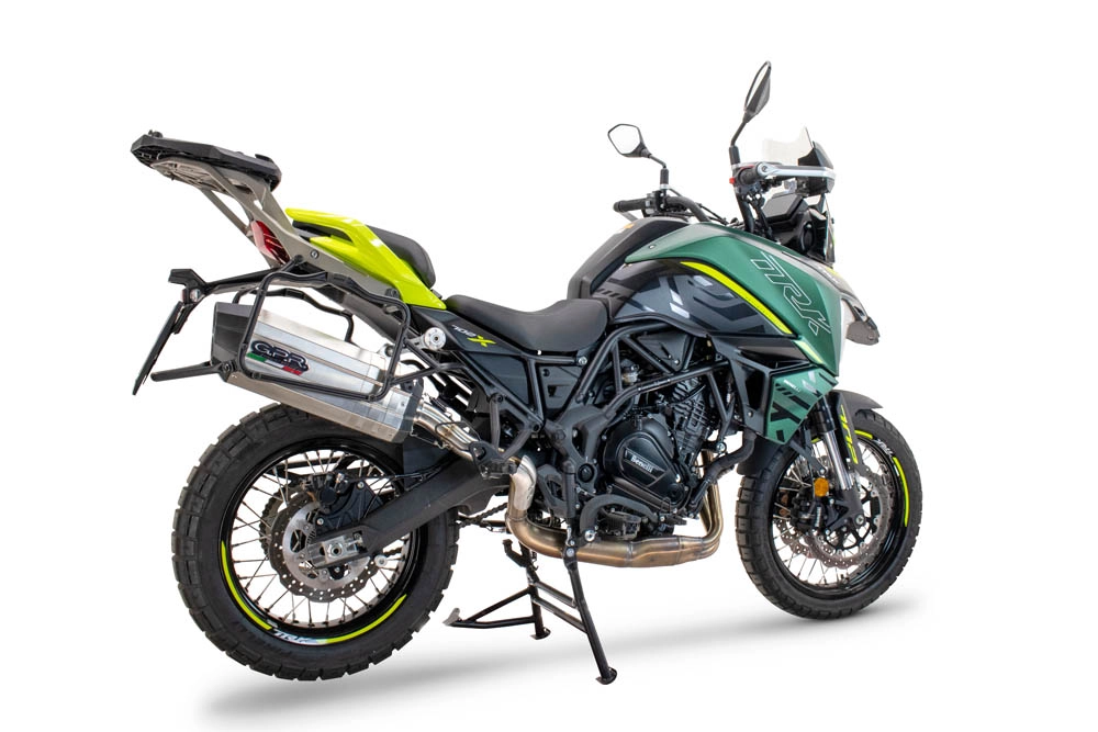 Die italienische Marke GPR Exhaust System hat sich auf Titan und Stahl spezialisiert und kann Ihre Benelli Trk 702 2023 - 2024 mit dem Sonic Titanium, eine Homologierter Slip-On-Auspuff inklusive abnehmbarem DB Killer und Verbindungsrohr.