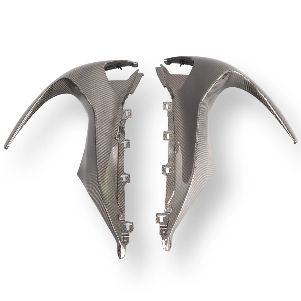Carbon Scheinwerfer Verkleindung Glanzend BMW M1000RR 2023-, geliefert ohne Schrauben oder andere Befestigungen. Die Bohrungen sind bereits an den Motorradverkleidungen aus Carbon angebracht. Die Teile sind mit glänzendem oder mattem Lack erhältlich.