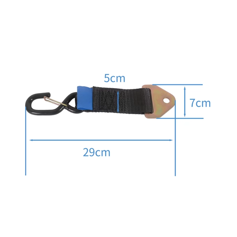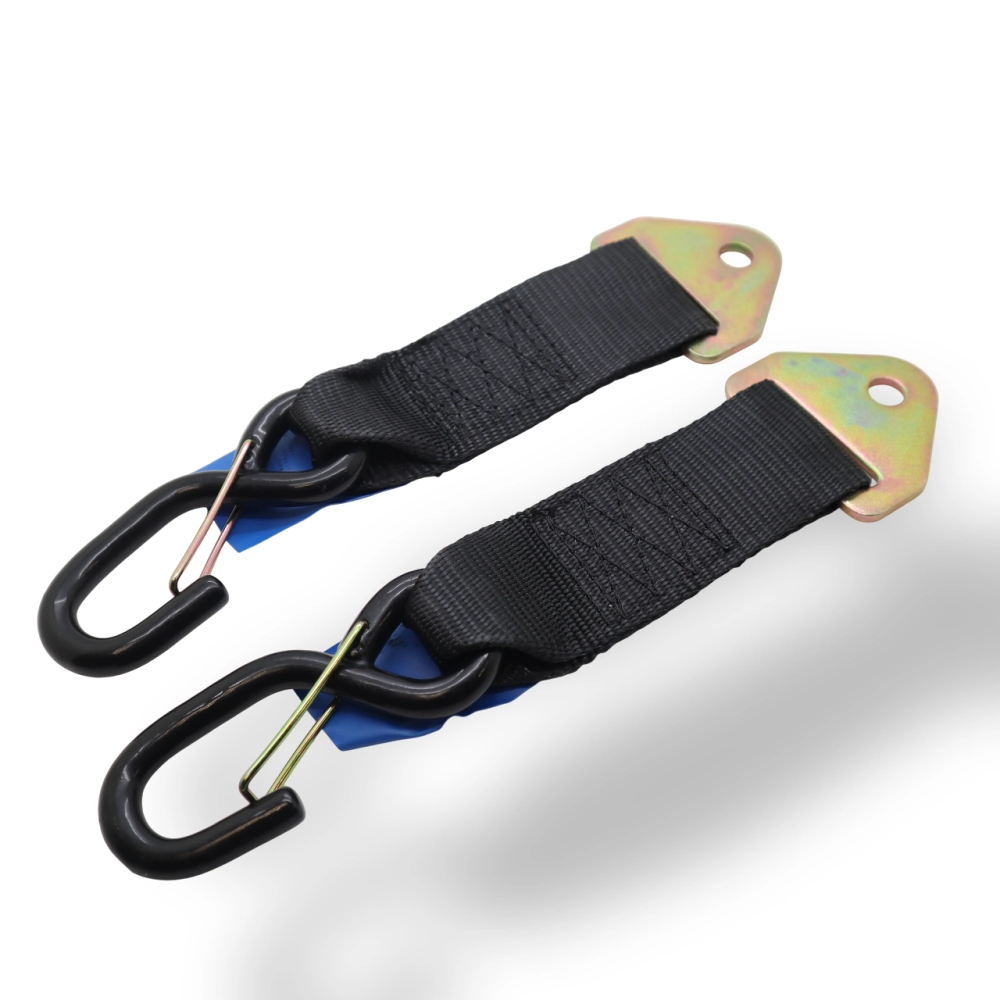 2 Gurtbinder mit einem „S“-Haken mit einem Verschluss an einem Ende und einem weiteren festen Teil, der für eine bessere Stabilität direkt in Ihrem Lieferwagen oder Anhänger montiert wird.