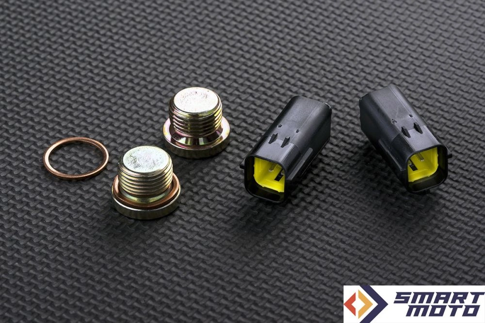 - Das Kit enthält alles Notwendige (Eliminatoren und Stopfen), um das Sauerstoffsensorsystem Ihres Motorrads wirksam zu umgehen.