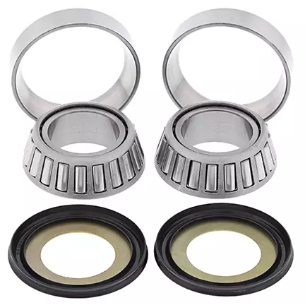 Il kit di cuscinetti di sterzo conici All Balls Racing Dale un lavado de cara a tu moto con el kit completo de rodamientos de dirección cónicos All Balls Racing 22-1022. Konus-Lenkkopflagersatz. Der Satz ist komplett und enthält Lager und Dichtungen für Frontumbauten.