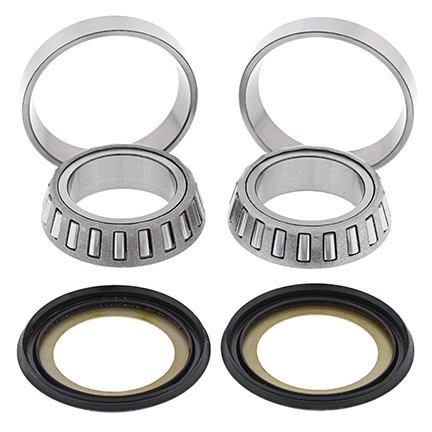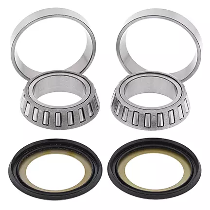 Il kit di cuscinetti di sterzo conici All Balls Racing Dale un lavado de cara a tu moto con el kit completo de rodamientos de dirección cónicos All Balls Racing 22-1059. Konus-Lenkkopflagersatz. Der Satz ist komplett und enthält Lager und Dichtungen für Frontumbauten.