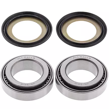 Il kit di cuscinetti di sterzo conici All Balls Racing Dale un lavado de cara a tu moto con el kit completo de rodamientos de dirección cónicos All Balls Racing 22-1067. Konus-Lenkkopflagersatz. Der Satz ist komplett und enthält Lager und Dichtungen für Frontumbauten.