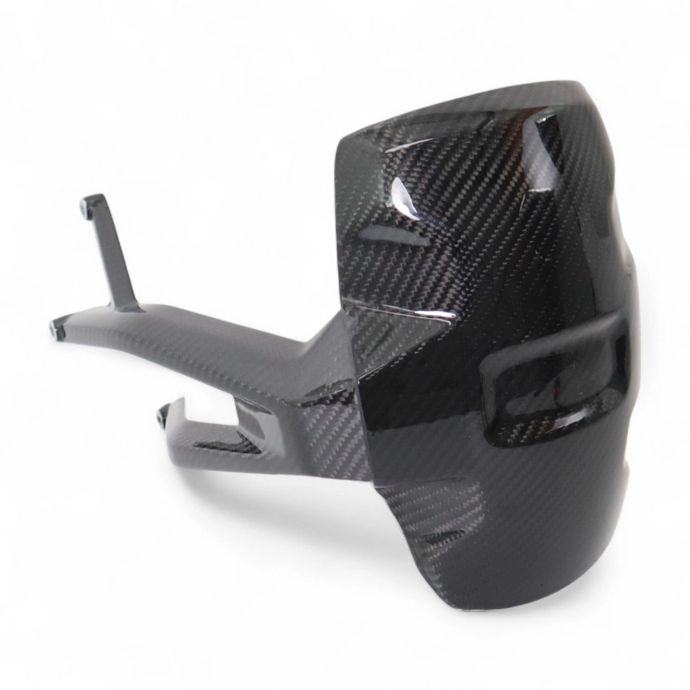Carbon Kotflügel BMW R1300GS 2024-, geliefert ohne Schrauben oder andere Befestigungen. Die Bohrungen sind bereits an den Motorradverkleidungen aus Carbon angebracht. Die Teile sind mit glänzendem oder mattem Lack erhältlich.