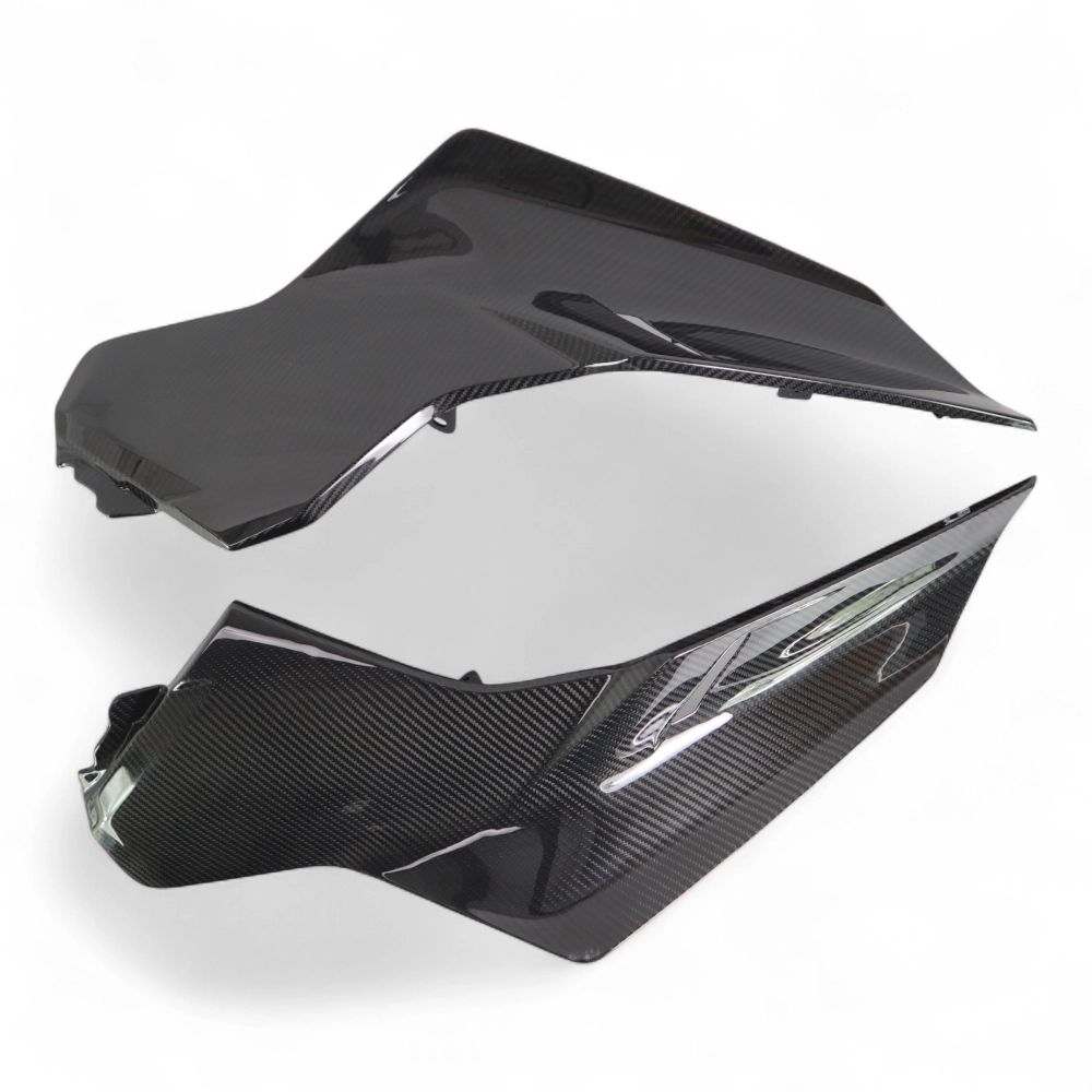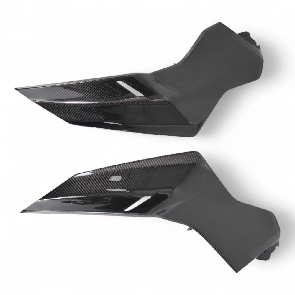 Carbon Seiten verkleidung für KTM Duke 390 2024- zur direkten Montage an den originalen Befestigungspunkten Ihres Motorrads als Ersatz für die originale Verkleidung. Die Carbonteile werden ohne Schrauben geliefert.