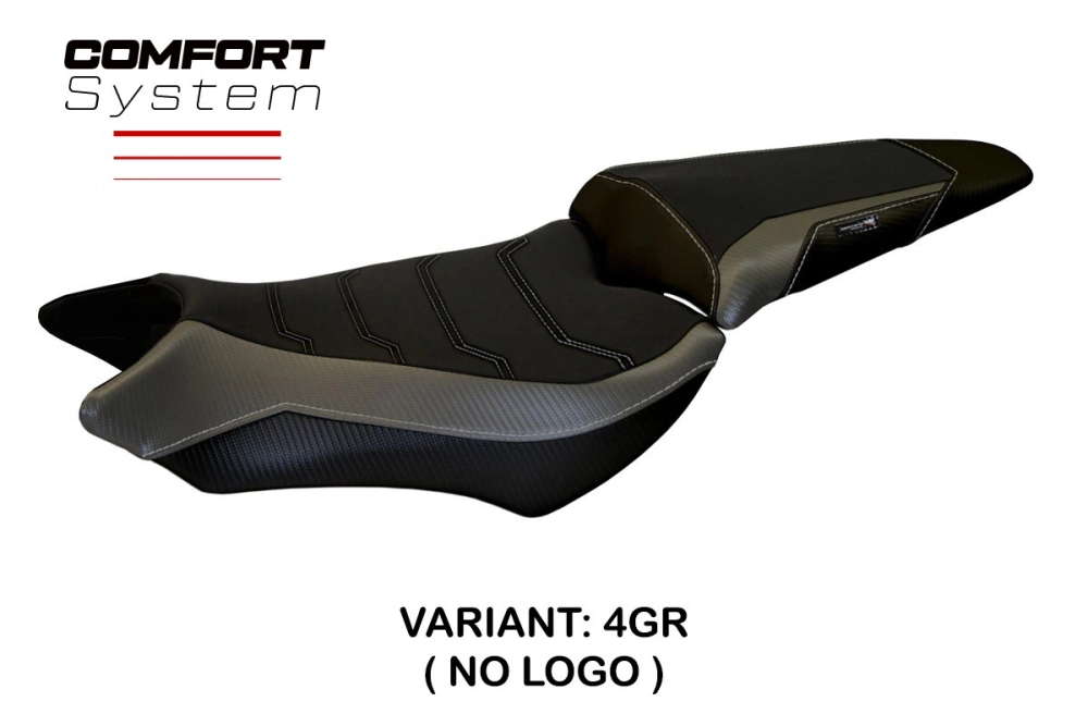 - Comfort system: Dieser Bezug ist außen exakt identisch mit allen anderen Bezügen, ist aber innen mit einer speziellen 2,5 cm dicken Schicht aus Memory-Schaumstoff gekoppelt. Tappezzeria Italia ist der einzige Hersteller, der die Memory Foam-Technologie verwendet, die den Fahrkomfort verbessert, indem sie Ermüdungserscheinungen und Vibrationen des Motorrads verringert.
