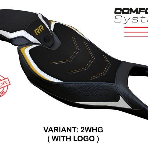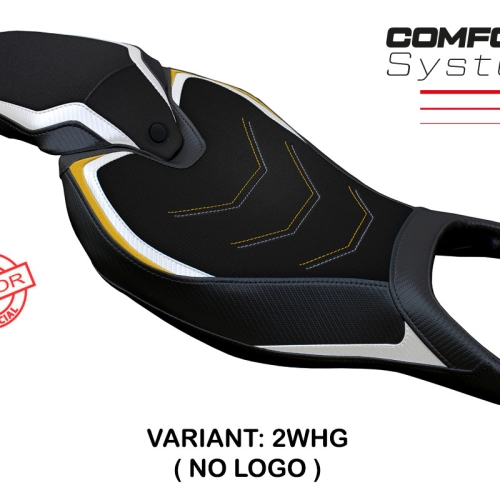 - Comfort system: Dieser Bezug ist außen exakt identisch mit allen anderen Bezügen, ist aber innen mit einer speziellen 2,5 cm dicken Schicht aus Memory-Schaumstoff gekoppelt. Tappezzeria Italia ist der einzige Hersteller, der die Memory Foam-Technologie verwendet, die den Fahrkomfort verbessert, indem sie Ermüdungserscheinungen und Vibrationen des Motorrads verringert.
