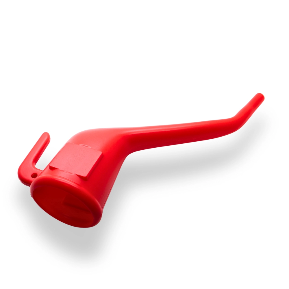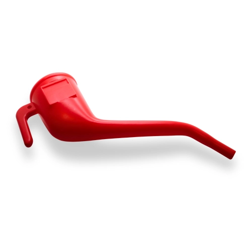 Praktischer roter Trichter für Wasser, Öl oder Kraftstoff. Der hohe Spritzschutzrand verhindert Überläufe, und der ergonomische Griff sorgt für eine einfache Handhabung. Ideal für Motorradwartung.