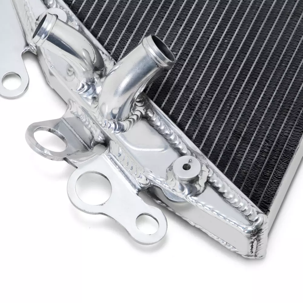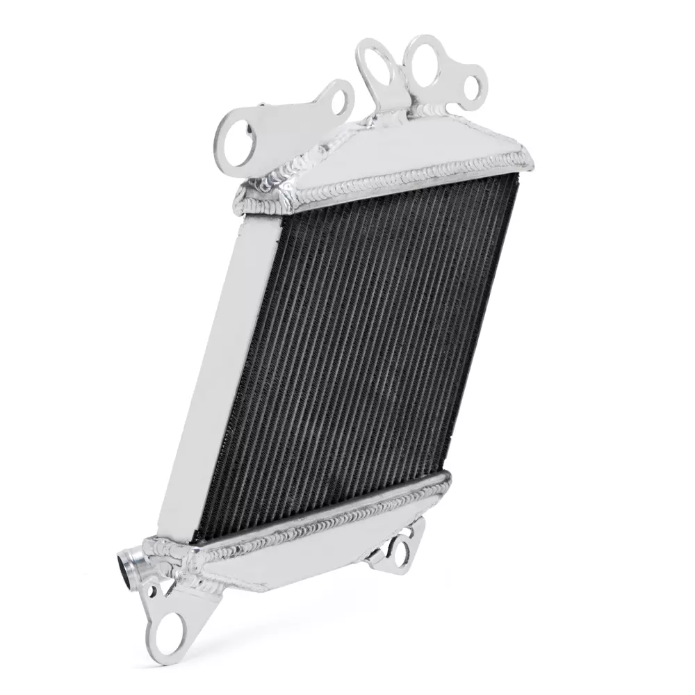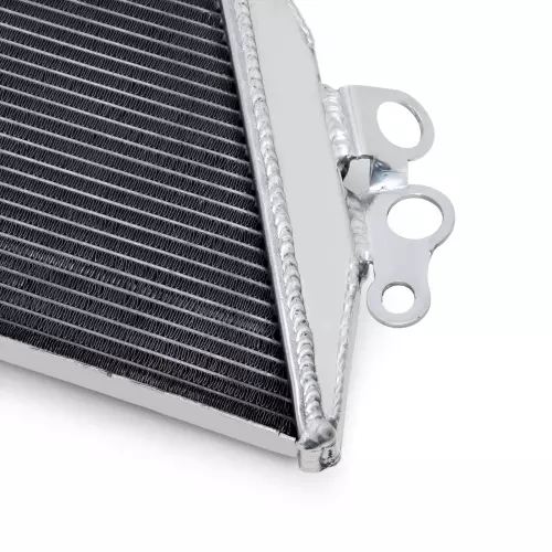 Dieser Kühler ist für eine effektive und schnelle Kühlung, auch unter extremen Bedingungen, konzipiert. Der Aluminiumkern ist vakuumgeschweißt, was eine perfekte Dichtung und erhöhte Widerstandsfähigkeit gegen thermische Überspannungen gewährleistet, besonders im Wettkampfeinsatz :
