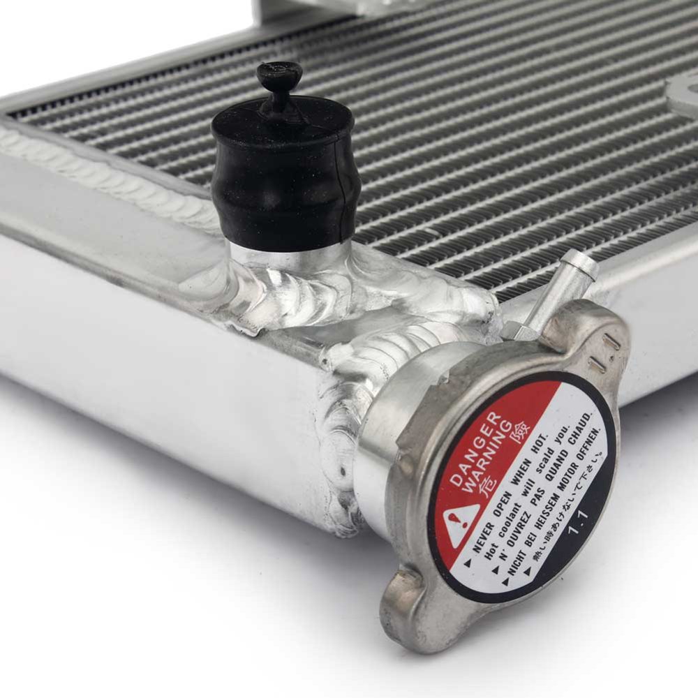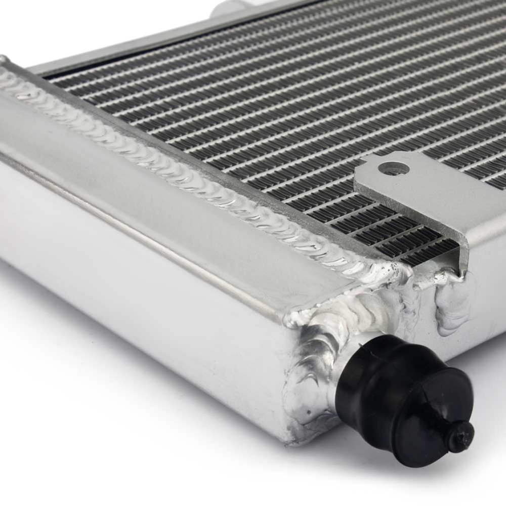Dieser Kühler ist für eine effektive und schnelle Kühlung, auch unter extremen Bedingungen, konzipiert. Der Aluminiumkern ist vakuumgeschweißt, was eine perfekte Dichtung und erhöhte Widerstandsfähigkeit gegen thermische Überspannungen gewährleistet, besonders im Wettkampfeinsatz :