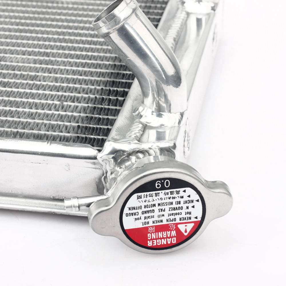 Dieser Kühler ist für eine effektive und schnelle Kühlung, auch unter extremen Bedingungen, konzipiert. Der Aluminiumkern ist vakuumgeschweißt, was eine perfekte Dichtung und erhöhte Widerstandsfähigkeit gegen thermische Überspannungen gewährleistet, besonders im Wettkampfeinsatz :