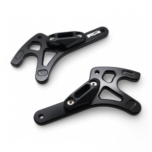Optimieren Sie den Ständer Ihrer Yamaha R1, R6 oder R7 mit diesem Paar Spider-Liftgabeln. Diese Gabeln sind so konzipiert, dass sie direkt an den Gewindegängen der Schwinge befestigt werden können und ersetzen die herkömmlichen Diabolos. Diese Gabeln bilden dann zwei feste Stifte, auf denen ein universeller Hinterbauständer (mit V-Rollen oder Hubrollenblöcken) aufliegen kann.