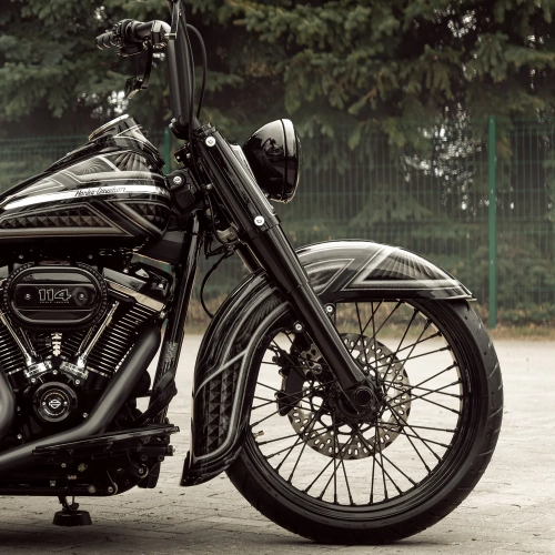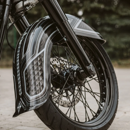 Entdecken Sie unser neues "Classic"-Vorderrad-Schutzblech für ein 21"-Rad. Seine fein profilierten Enden spiegeln das Design unserer verlängerten Hinterradschutzbleche im gleichen Stil wider, um einen harmonischen und markanten Look zu schaffen.