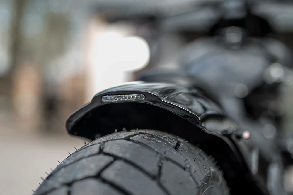 Wir präsentieren den verkürzten "Bobbstr" Kotflügel der Softail-Serie von Killer Custom, entwickelt für einen authentischen Bobber-Look.