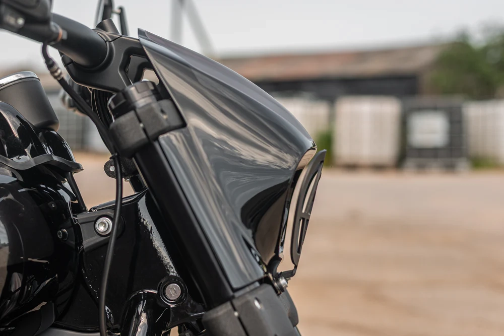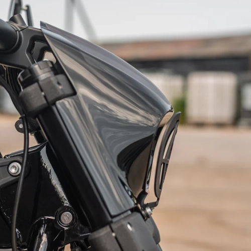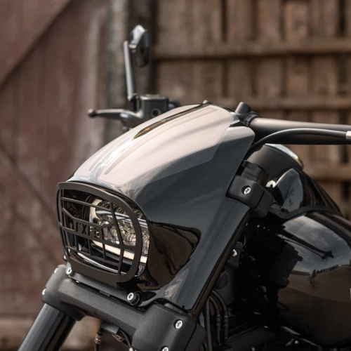 Tolles Zubehör für unsere „Aggressor“-Scheinwerferverkleidung für Softail Fat Bob FXFB FXFBS. Mit einer mattschwarzen Pulverbeschichtung für eine besonders einfache Montage. Dieses Gitter ist stabil, robust und beeinträchtigt weder die Lichtstärke noch die Leuchtkraft des Scheinwerfers.