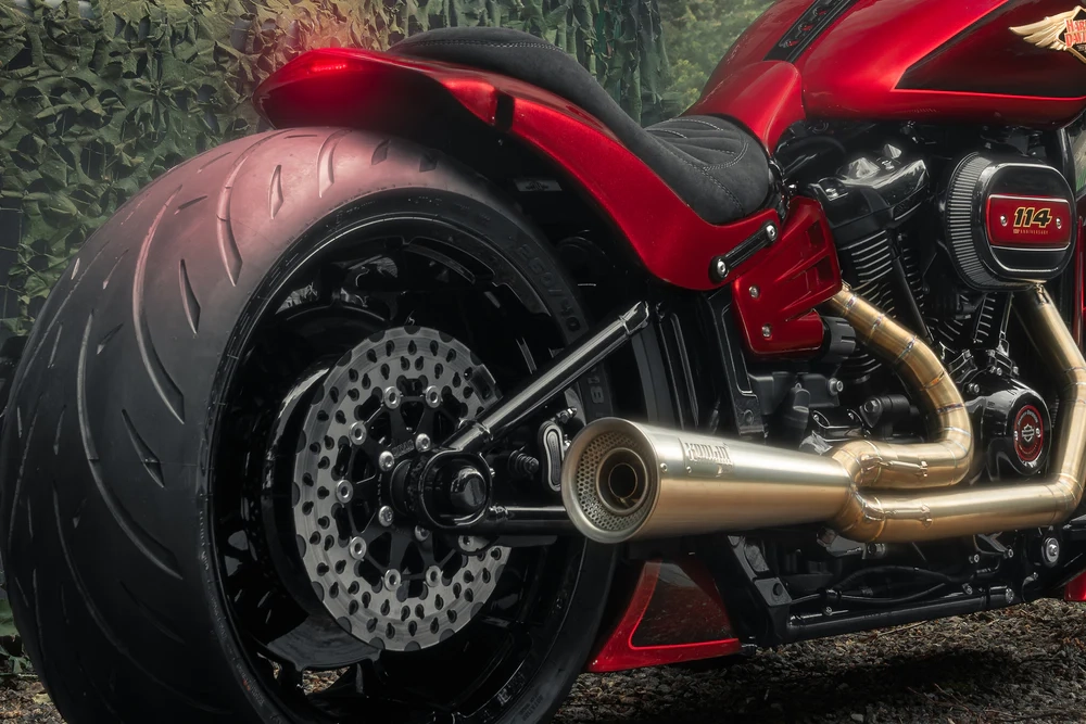 Wir präsentieren unsere neue „Avenger“-Kollektion und das einzigartige hintere Schutzblech für Harley-Davidson M8 Softail FXDR, Breakout und Fat Boy Modelle. Das „Avenger“-Schutzblech wird mit integrierten Rück- und Blinkleuchten geliefert. Dank integrierter Streben ist es sowohl für Solo- als auch Soziussitze geeignet. Eine passende Solo-Sitzwanne ist im Lieferumfang enthalten. Passende Custom-Sitze können separat bestellt werden, wenn du ein komplett individuelles Heck möchtest. Passend für Hinterreifen von 240 bis 260 mm.