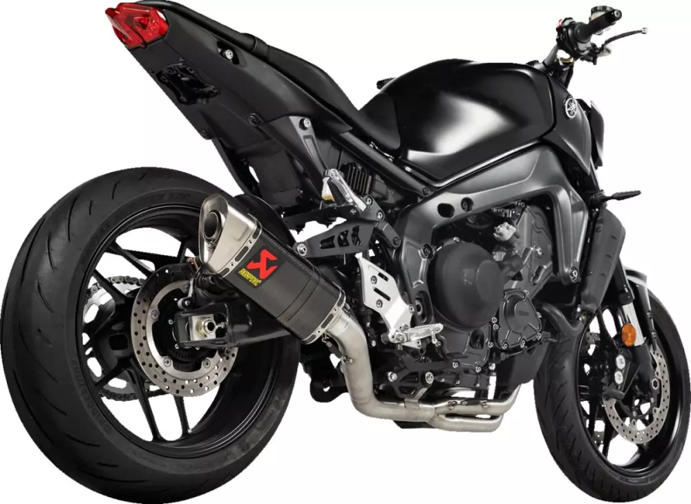 Die Akrapovic Racing Line Auspuffanlage für YAMAHA MT-09 25 verfügt über eine leichte äußere Schalldämpferhülle aus Carbonfaser, Verbindungsrohre und Krümmer aus Edelstahl sowie eine Endkappe aus Titan. Dadurch ist die Auspuffanlage 2,6 kg (36,5 %) leichter als die Serienanlage. Der Auspuff besitzt einen kürzeren Schalldämpfer, um die sportliche Optik zu verstärken, und tritt seitlich am Motorrad aus, um die visuelle Wirkung weiter zu erhöhen.