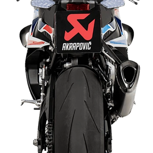 Evolution Line Auspuffanlage für die BMW M 1000 RR 25, entwickelt für maximale Motoreffizienz bei gleichzeitiger Reduzierung des Gesamtgewichts für optimiertes Motorradhandling. Modell mit ovalen Akrapovic-Flanschen; komplett aus Titan gefertigt. Die Schalldämpferform ist einzigartig, dank einer gewölbten Gravur, die sich über die gesamte Länge des Auspuffs erstreckt und in die handgefertigte Endkappe aus Kohlefaser übergeht. Um perfekte Leistung, Gasannahme und Haltbarkeit zu erreichen, wird ein neues ECU-Mapping empfohlen. Auf dem Produktbild ist das System mit dem optionalen Kohlefaser-Hitzeschild P-HSB10E3 dargestellt. Die Schalldämpferhalterung aus Kohlefaser (erforderlich für die Montage, wenn die Soziusfußrasten entfernt werden) ist bereits im System enthalten. Das Produkt wurde gemäß den europäischen Fahrzeugspezifikationen entwickelt und getestet. Kompatibilität und Leistung bei Nicht-EU-Fahrzeugen können je nach Markt und Fahrzeugspezifikationen variieren.