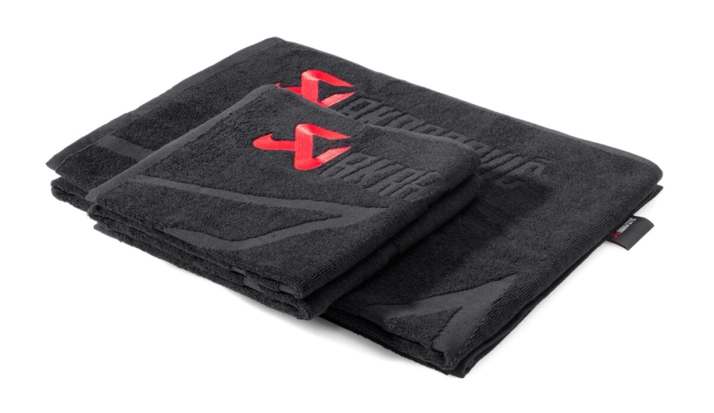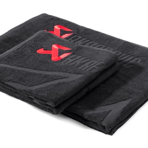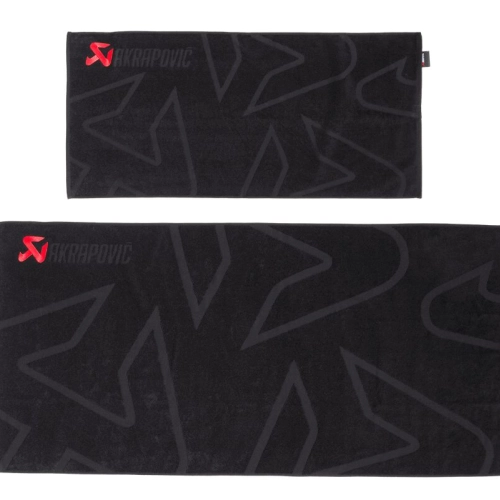 Akrapovic Handtuch-Set 2-teilig mit Dry Bag Premium-Set bestehend aus einem großen Handtuch (70 x 140 cm) und einem mittelgroßen Handtuch (50 x 100 cm), gefertigt aus 100 % hochwertiger Baumwolle für ein seidiges Tragegefühl und optimale Saugfähigkeit. Elegant und dezent in Schwarz gehalten, sind sie mit einem gestickten roten Akrapovic-Logo verziert. Im Lieferumfang ist ein 8L (60 x 31 cm) Dry Bag aus 210T Polyester mit Kunststoffschnalle enthalten, ideal zum Schutz Ihrer Handtücher oder anderer Gegenstände vor Feuchtigkeit.