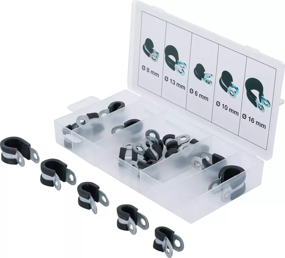 Sortiment Rohrschellen mit Gummibeschichtung | Ø 6 - 16 mm | 18 Stück