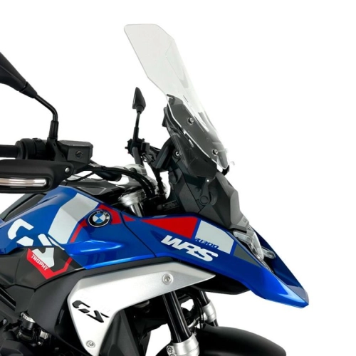 WRS Caponord Transparente Windschutzscheibe für die BMW R1300GS, hergestellt aus hochwertigen Materialien. Störende Turbulenzen an Schultern und Helm werden eliminiert. Der erhöhte Schutz der Windschutzscheibe garantiert Sicherheit, Verarbeitung, maximale Widerstandsfähigkeit und Transparenz. Integriert sich perfekt in die Linienführung des Motorrads für eine noch attraktivere Optik. Windschutzscheibe für Motorräder mit oder ohne Radar.