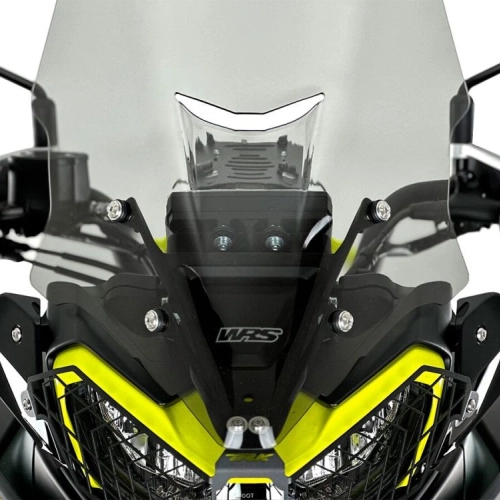 WRS Benelli Caponord TRK702/X getönte Windschutzscheibe aus hochwertigem PMMA-Plexiglas. Störende Turbulenzen an Schultern und Helm werden eliminiert. Erhöhter Schutz durch die Windschutzscheibe. Integriert sich perfekt in die Linie des Motorrads für eine noch attraktivere Optik. Die WRS-Version ist 16 cm höher als das Original.