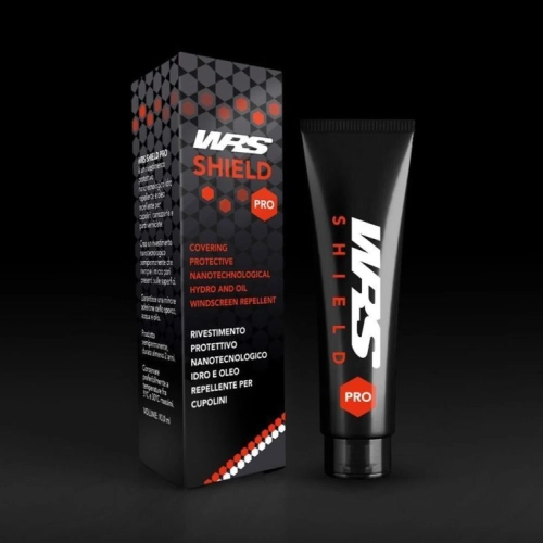 SHIELD PRO Windschutzscheibenreiniger. WRS SHIELD PRO stellt dank Nanotechnologie einen revolutionären Fortschritt im WRS-Windschutzscheibenschutz dar. Diese Flüssigkeit in der praktischen 10-ml-Flasche wurde speziell für Motorradverkleidungen entwickelt, ist aber auch für Visiere und andere Kunststoffteile äußerst wirksam. Das Besondere: Dank einer permanenten wasser- und ölabweisenden Schicht sind keine speziellen Reinigungsmittel erforderlich. Das vereinfacht die Pflege und bewahrt das Erscheinungsbild der Oberflächen. Einmal aufgetragen, schützt eine permanente Schicht Kunststoffoberflächen vor Schmutz, Insekten und Witterungseinflüssen. Ein häufiges Nachauftragen ist nicht erforderlich. Diese nanotechnologische Schicht weist nicht nur Wasser, sondern auch öl und andere Flüssigkeiten ab und sorgt so für optimale Sicht und Transparenz. Neben Motorradverkleidungen kann es auf vielen Kunststoffoberflächen wie Visieren, Verkleidungen, Spiegeln und Kunststoffteilen aller Fahrzeuge eingesetzt werden. Dank seiner extrem langen Lebensdauer verlängert es die Lebensdauer von Kunststoffoberflächen und reduziert den Austauschbedarf beschädigter Kuppeln oder Visiere. Vorzugsweise zwischen 5 °C und maximal 30 °C lagern.