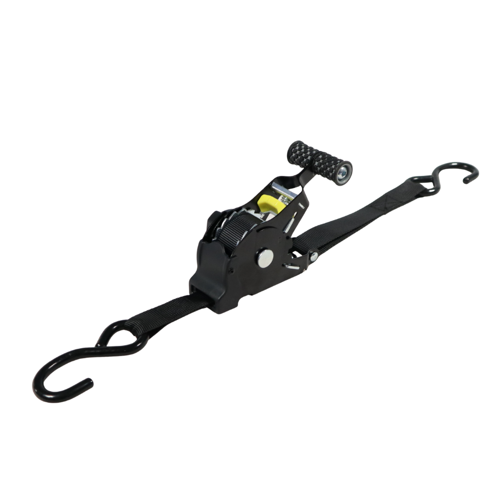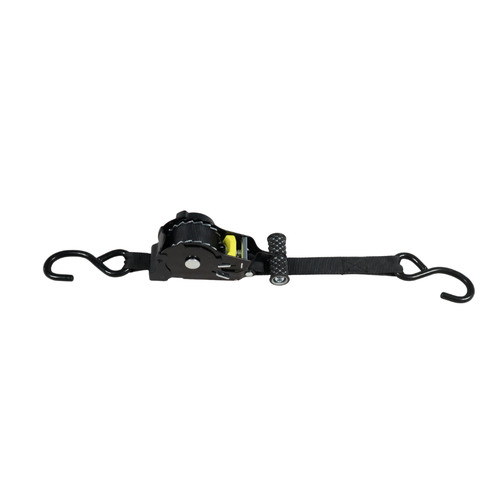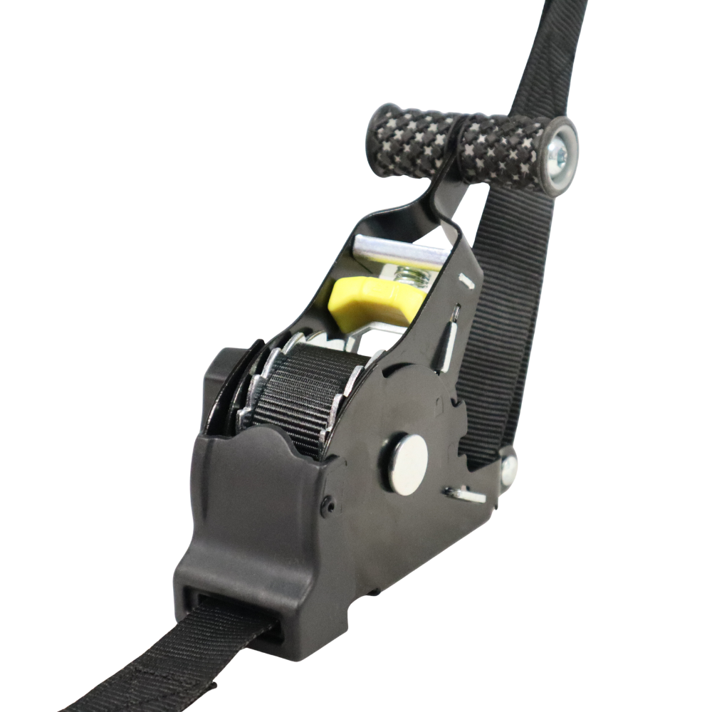 Der ergonomische Ratschenhebel mit rutschfestem Griff sorgt für eine komfortable Handhabung beim Spannen und Lösen des Gurts. Dieses Design erleichtert die Nutzung, auch mit Handschuhen, und ermöglicht es, Ihr Motorrad in wenigen Sekunden sicher zu befestigen.
