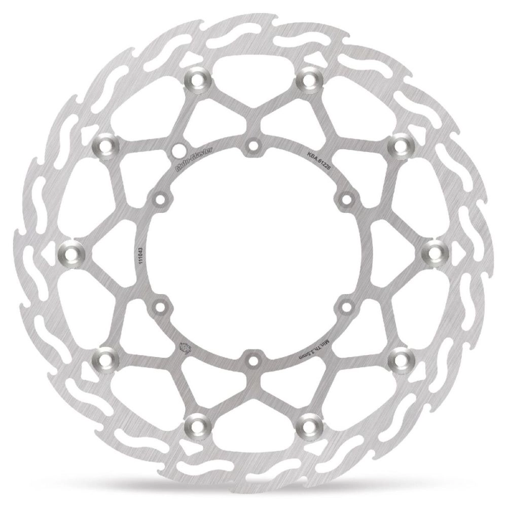 - Wie die äußere Bremsscheibe mit ihrem Flammenmuster ist auch die innere Trägerplatte aus hochwertigem Edelstahl gefertigt und mit 10 Edelstahl-Schwimmkörpern befestigt.