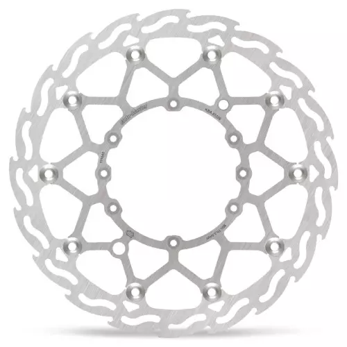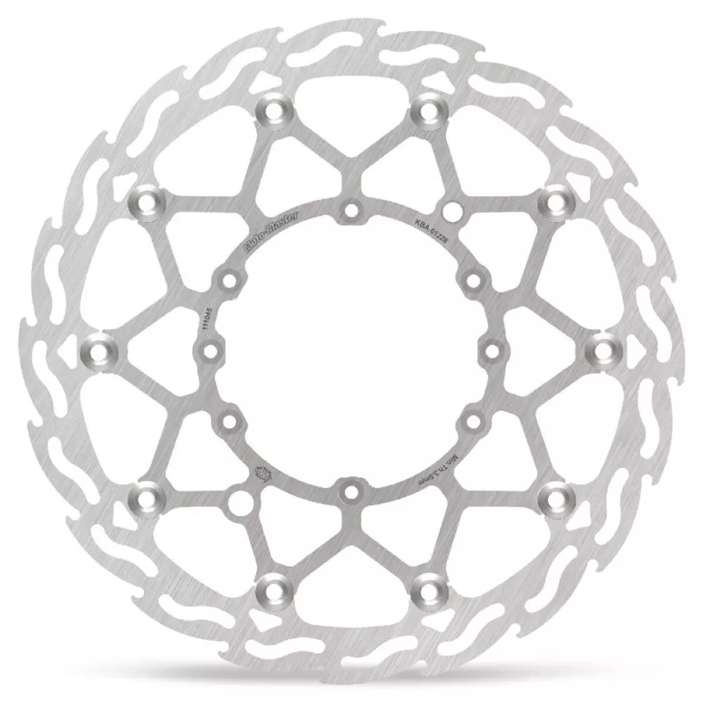 - Wie die äußere Bremsscheibe mit ihrem Flammenmuster ist auch die innere Trägerplatte aus hochwertigem Edelstahl gefertigt und mit 10 Edelstahl-Schwimmkörpern befestigt.