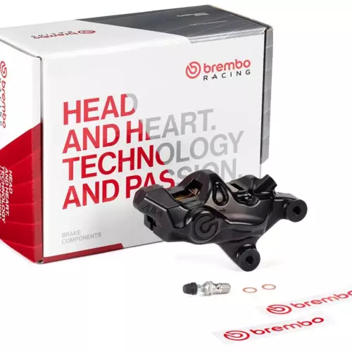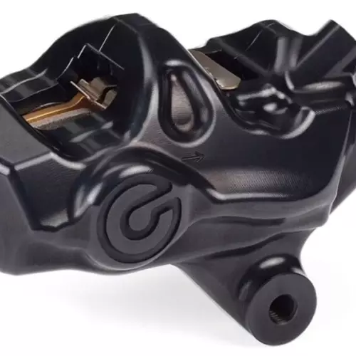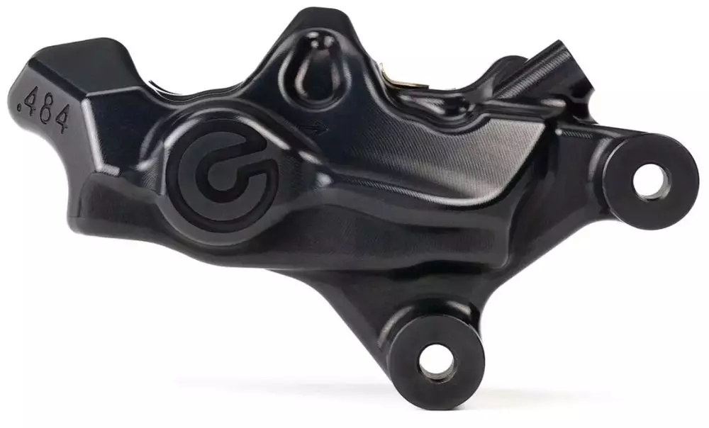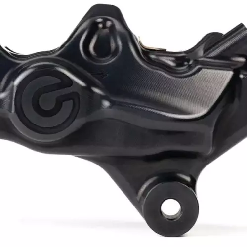 Der Brembo Logonero Bremssattel ist hart anodisiert in Anthrazitschwarz und trägt das charakteristische Brembo-Logo.