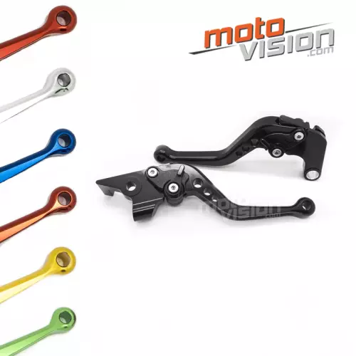 Pair of short, CNC-machined aluminium brake and clutch levers for extra strength and precision. These levers are designed for perfect compatibility with the following motorbike models: Honda VFR800/F VTR1000F Firestrom VFR750 CBF1000 VF750S Sabre. The full list of motorbike models is referenced in the compatibility tab.