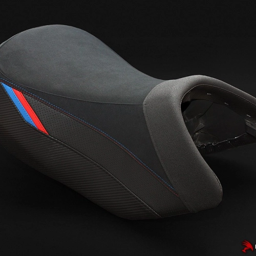 High quality Luimoto Seat cover Couvre selle pour pilote BMW R1200GS Adventure 06-13 made in Canada. The brand designs products with a superb finish: detailed embroidery, navy vinyl, carbon style fabric or high quality suede leather... The design and colours are customised to match the look of your bike.