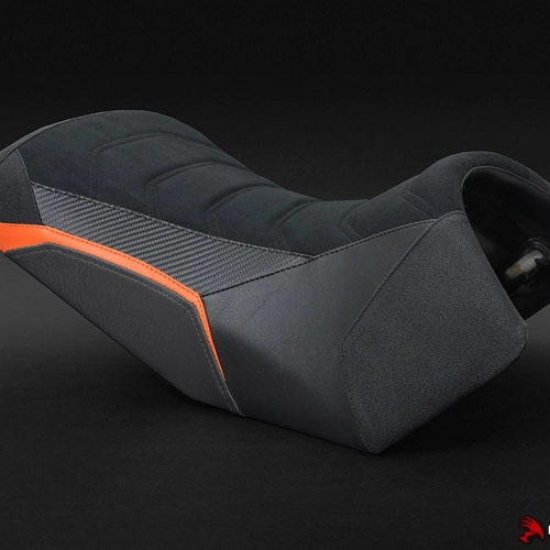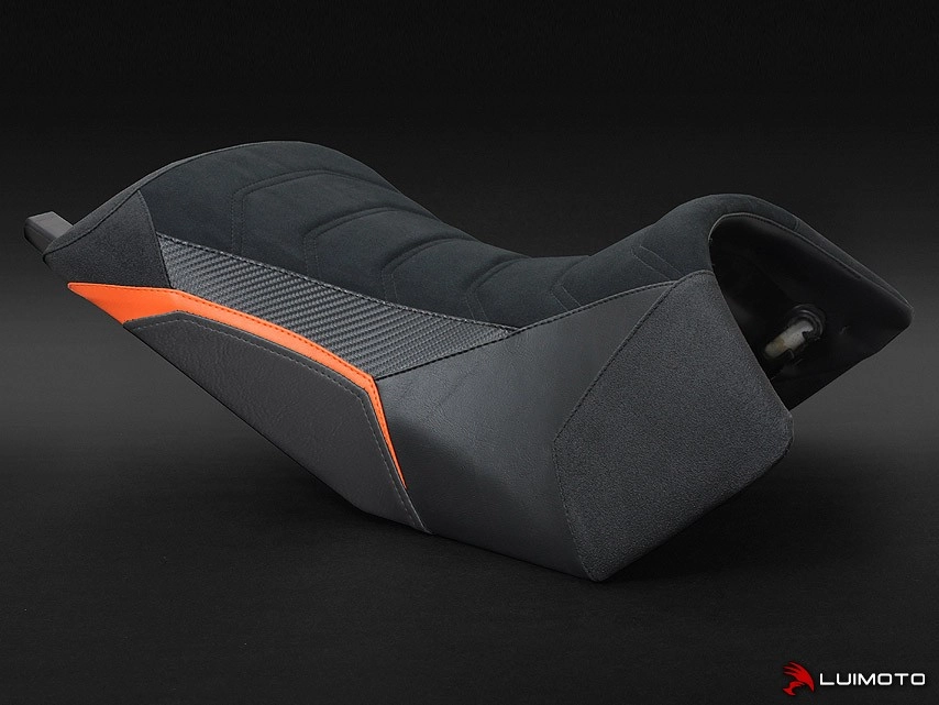 High quality Luimoto Seat cover Couvre selle pour pilote KTM 1190 Adventure 13-16 made in Canada. The brand designs products with a superb finish: detailed embroidery, navy vinyl, carbon style fabric or high quality suede leather... The design and colours are customised to match the look of your bike.