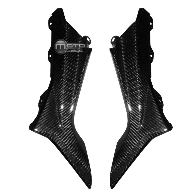 Carbon under seat cover MV Agusta B3 2012, delivered without screws or other fixings. The holes are already drilled on the carbon motorbike fairings. The parts are available in glossy or matt varnish.