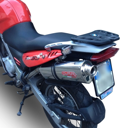 Specialising in titanium and steel, Italian brand GPR Exhaust System can equip your Bmw F 650 Gs Twin 2008 - 2018 with the Trioval, a homologated slip-on exhaust including removable DB Killer and link pipe.