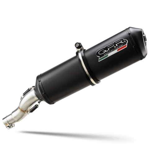 GPR's Ghisa silencer has a black painted finish that withstands high temperatures. It has an oval shape that measures 90mm x120mm.This kit includes the specific lnik pipe or half-manifold with specific appropriate brackets and accessories. This allows for installation without any structural modifications.This is an original GPR product, developed after GPR's experience in the World Championship. It offers an innovative design, improved performance, weight savings and a full-bodied sound.Weight : 1,8 Kg