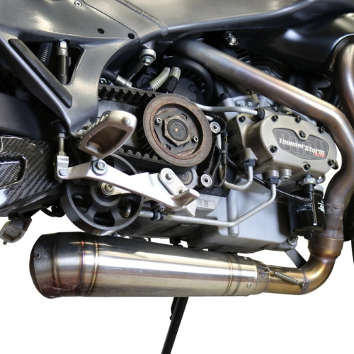 Specialising in titanium and steel, Italian brand GPR Exhaust System can equip your Buell UlySseses Xb 12 X 2008 - 2011 with the Powercone Evo, a homologated slip-on exhaust including removable DB Killer and link pipe.