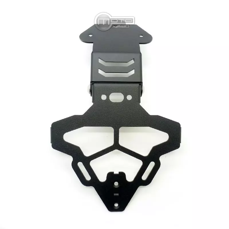 Aluminum license plate holder with specific adapter to the bike, this kit also includes mounting hardware.