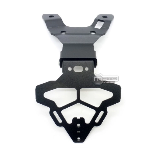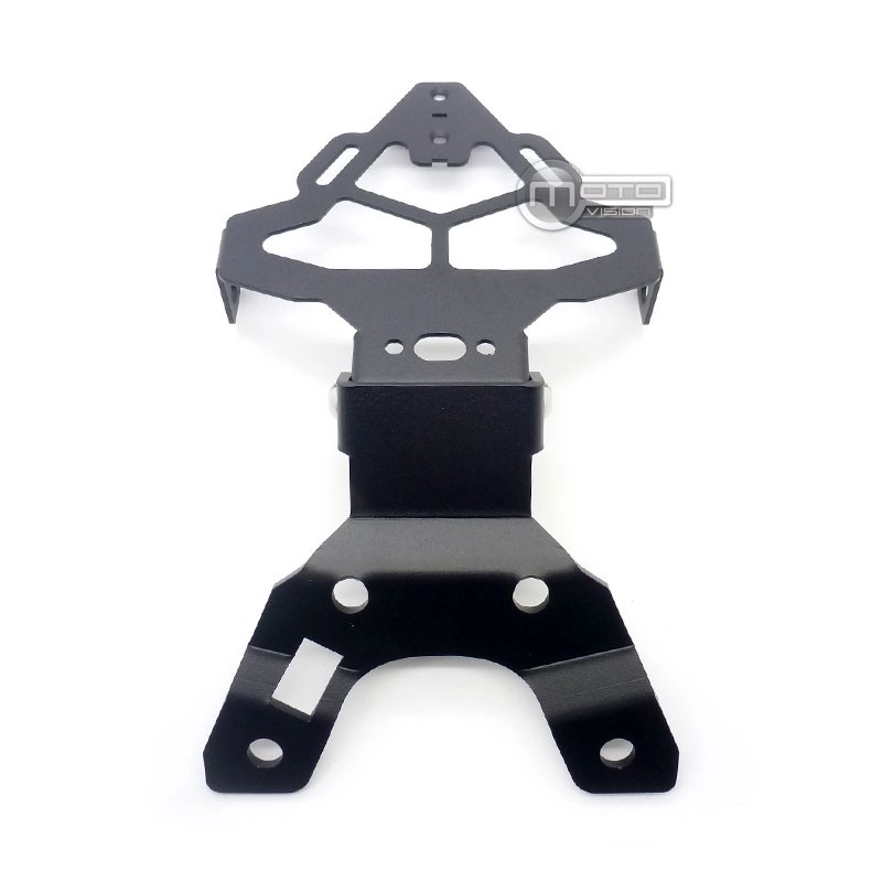 Aluminum license plate holder with specific adapter to the bike, this kit also includes mounting hardware.